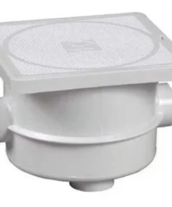 caja de registro cuadrada de 22 cms x 22 cms y altura de 20 cms con conexiones de 3/4″ para instalación sobre banqueta, fabricada en plástico abs diseñada para la conexión de cableado para luces de piscina